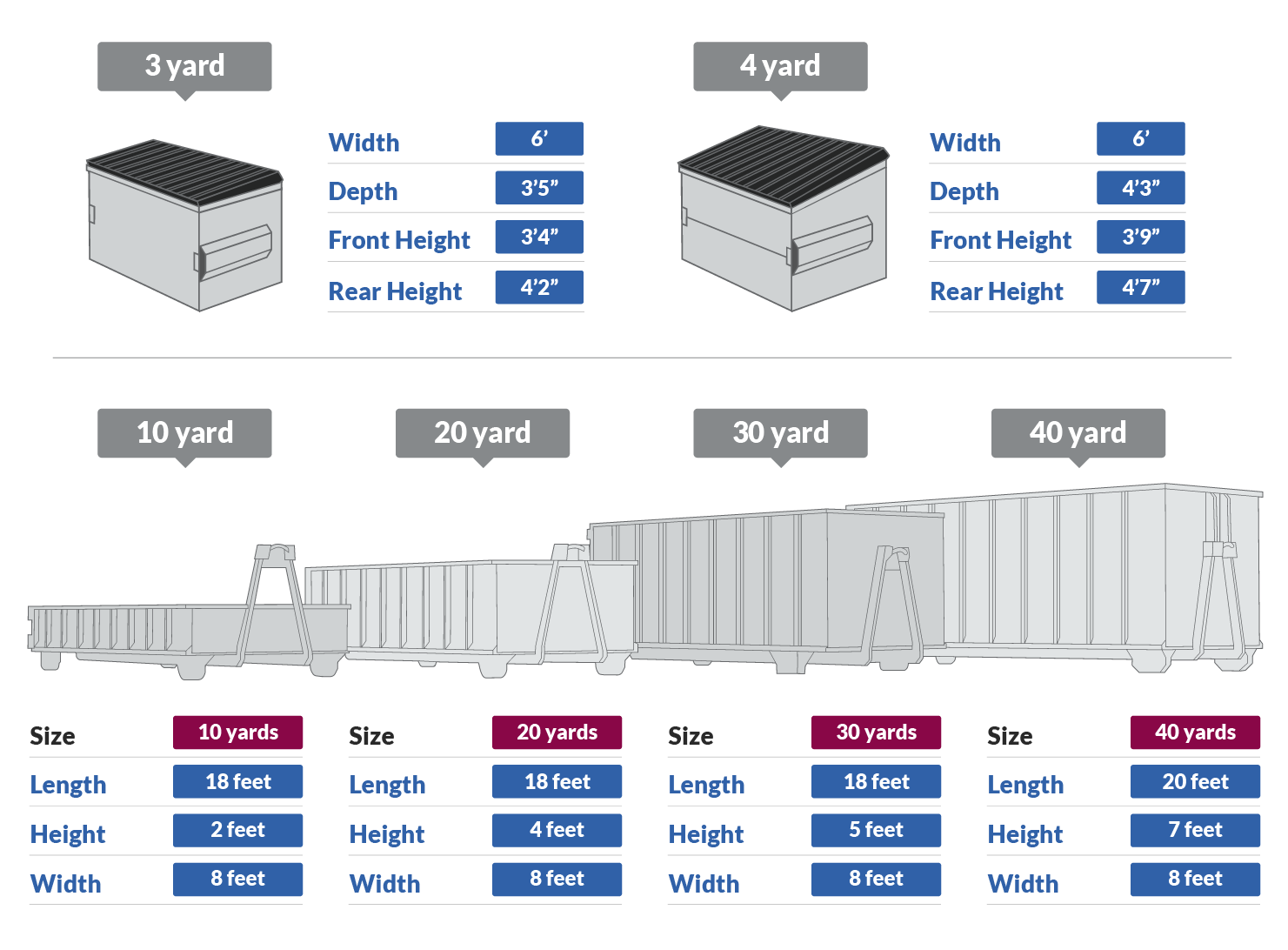 3-yard approximate dimensions: 6' wide, 4' high, 3'6" deep.